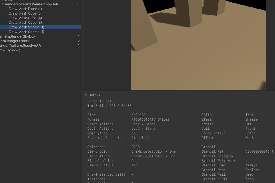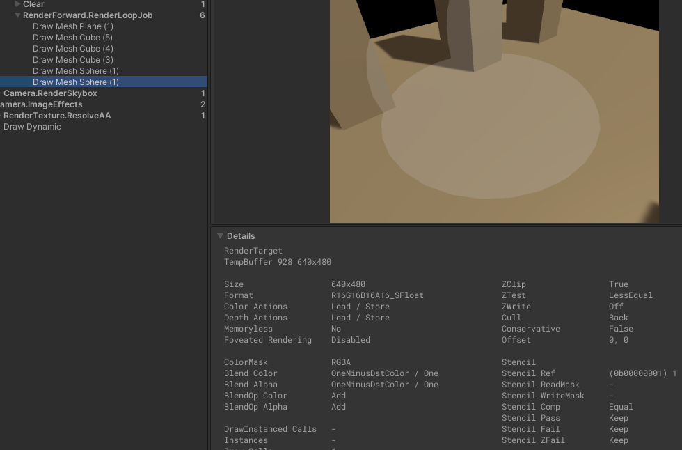 프레임 디버거로 2개의 Pass가 어떻게 렌더링 되고 있는지 확인하면 이해하기 편할 것 같아 첨부한다.